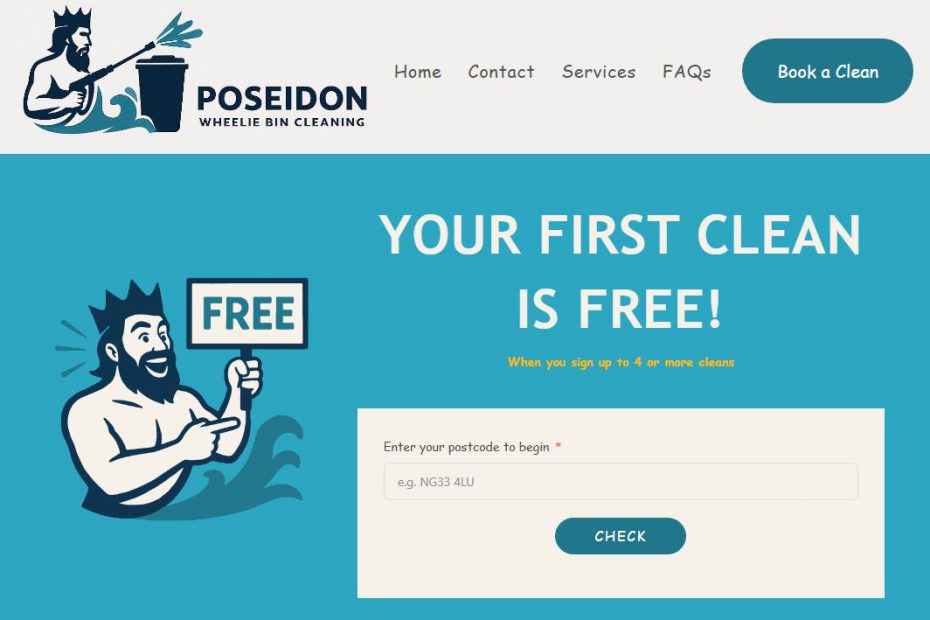 Kyri, the owner of Poseidon Bins, came to me with a clear goal: to create a local wheelie bin cleaning business in the Grantham area and make it simple for customers to book and pay for services online. What he didn’t have was a roadmap for how to get there. Together, we worked through the full process – from how the booking journey should look, to handling payments securely, through to marketing and pricing strategies that would help the business… Read More »Poseidon Bins – Wheelie Bin Cleaning